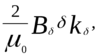 где Bδ — индукция в воздушном зазоре, Тл, рассчитанная по (9.23) по окончательно принятому числу витков в фазе обмотки w1 и обмоточному коэффициенту kоб1 определенному для принятой в машине обмотки; δ – воздушный зазор, м; kδ – коэффициент воздушного зазора, рассчитанный по (4.15) или (4.16); μ0 — магнитная проницаемость: μ0 = 4 • 10-7 Гн/м.