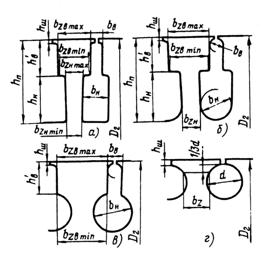 Рис. 9.46. Обозначения размеров зубцовой зоны