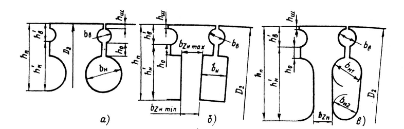 Рис. 9.45. Обозначение размеров зубцовой зоны короткозамкнутых роторов