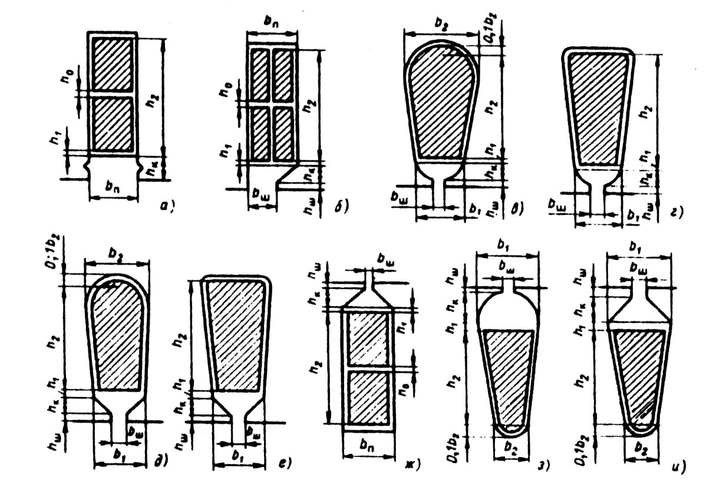 Входящий в формулу коэффициент магнитной проводимости пазового рассеяния λп определяют в зависимости от конфигурации пазов по формулам табл. 9.26.