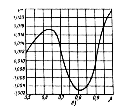 в — коэффициент К' в зависимости от укорочения шага обмотки β;