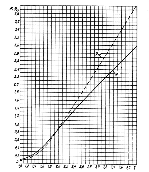 Рис. 9.57. Кривые φ и φкр в функции “приведенной высоты” ξ (φ = ξ – 1