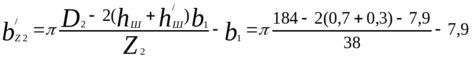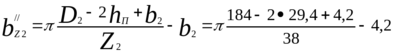 tz2 = πD2/Z2 =π 0,184/38 = 0,0152 м = 15,2 мм.