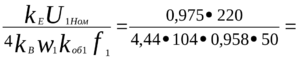 (для однослойной обмотки с q = 4 по табл. 3.16 kоб1 = kp1 = 0,958; для Da = 0,272 м по рис. 9.20 kE = 0,975);