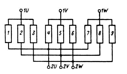 Рис. 3.38. Принципиальная схема двухскоростной обмотки,
