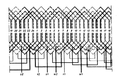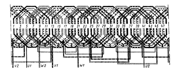 Концентрическая обмотка имеет несколько меньшие вылеты по сравнению с обычной двухслойной, что уменьшает среднюю длину витка, а следовательно, и массу обмоточной меди и осевую длину обмотанного статора.