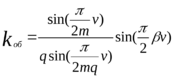 Общим аналитическим выражением для расчета kоб большинства современных симметричных обмоток с фазной зоной, равной электрическому углу π/m радиан, и с целым числом пазов на полюс и фазу (кроме некоторых видов специальных обмоток, например с несплошной фазной зоной и ряда других) является