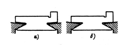 При креплении нажимными конусными фланцами коллекторные пластины выполняют в виде ласточкина хвоста. Изоляционные прокладки между пластинами — такой же формы. Коллекторы с креплением нажимными конусными фланцами делят на арочные и клиновидные. В первом случае нажим на пластины осуществляется только на ласточкин хвост (рис. 8,53, а), во втором — на ласточкин хвост и концы пластин (рис. 53, б).