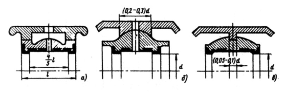а — жесткая; б — сферическая; в — узкоцилиндрическая