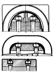 Расчет крепления главных полюсов в машинах постоянного тока проводится из условия, что на болты, которыми полюс соединяется со станиной, действует тангенциальная сила