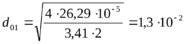 Размер болта по внутреннему диаметру резьбы, м, при числе болтов на полюс