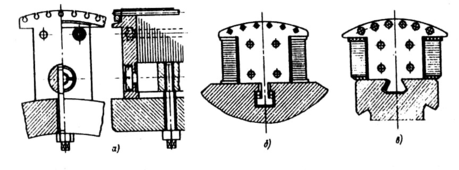 В машинах небольшой мощности полюсы болтами прикрепляют к валу или к напрессованной в него втулке (рис. 8.31).