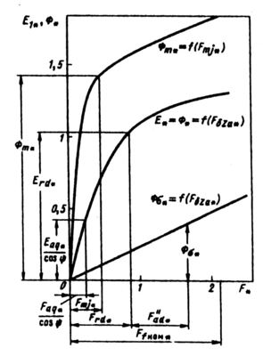 —базовое значение МДС, равное МДС обмотки возбуждения при холостом ходе и номинальном фазном напряжении. На рис. 10.28 все характеристики имеют одинаковые масштабы по соответствующим осям координат.