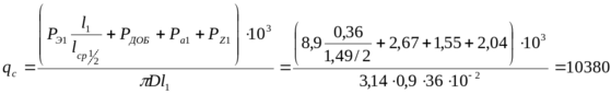 143. Удельный тепловой поток на 1 м2 внутреней поверхности статора по (10.169)