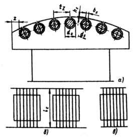 Расчет демпферной обмотки заключается в определении количества и размеров стержней обмотки, а также размеров короткозамыкающих сегментов. Короткозамыкающие сегменты замыкают все стержни с торцов полюса и соединяются с сегментами соседних полюсов, образуя кольцо (рис. 10.20,