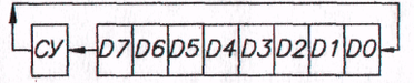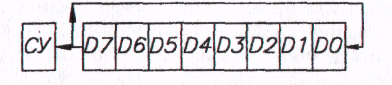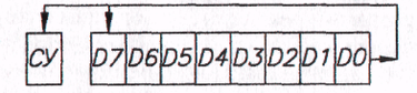 Флагами являются отдельные разряды регистра флагов F. Флаги устанавливаются при выполнении команд, влияющих на них. Каждый из флагов фиксирует значение одного из признаков выходного сигнала АЛУ после выполнения команды (см. рис. 19). Например, флаг Zнулевого результата равен единице, если выходной сигнал данных нулевой по всем восьми разрядам, и Z= 0, если сигнал не нулевой. Флаг СУ является по существу девятым разрядом выходного сигнала АЛУ. Его значение СУ = 1 указывает на переполнение разрядной сетки при выполнении операции суммирования, либо принимает значение бита, попадающего в него при выполнении сдвиговой операции. Если команда не влияет на флаги, то их значения сохраняются.