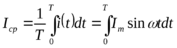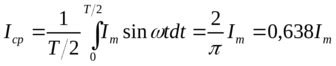 Используется также понятие среднего значения синусоидальной функции за полпериода: