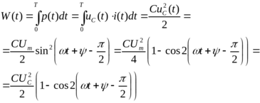 Среднее значение мощности равно нулю, т.е. рассеивание мощности или потери отсутствуют. Энергия электрического поля в конденсаторе равна: