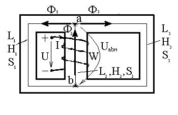 1.2.3.Несимметричная магнитная цепь с двумя намагничивающими обмотками (рис. 1.12).