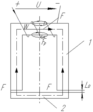 – плотность электромагнитной энергии (энергия в единице объема зазора), S0 – площадь одного воздушного зазора. Приравняв dWмех и dWэм, получим расчетную формулу силы притягивания электромагнита