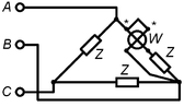 ри симметричной нагрузке реактивную мощность Q трехфазной системы можно измерить одним ваттметром (рис. 7.10 ).