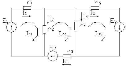 Выбираем направление всех контурных токов I11, I22 , I33 по часовой стрелке.