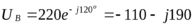 Вычисляем напряжения: UAK=I1R1=268.8 В, UKB=I1XC1=268.8 В, UAM=I3XL3=155.6 В, UMN=I3R3=155.6 В. Изображаем на векторной диаграмме соответствующие векторы. В треугольнике KAM угол A 300. По теореме косинусов вычисляем UKM: