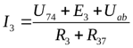 Далее, зная напряжение между двумя узлами U74 , по закону Ома для активного участка цепи определяем токи в ветвях преобразованной схемы ( I1 , I2 , I3 – см. рис. 3):