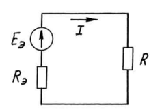 Метод эквивалентного генератора применяют, когда требуется определить ток или напряжение в одной ветви сложной цепи. В основе метода лежит теорема об эквивалентном генераторе, утверждающая, что любую линейную электрическую цепь, внутри которой действуют некоторые ЭДС, можно рассматривать относительно данной выделенной из нее ветви как генератор, ЭДС которого ЕЭ равна напряжению на зажимах цепи при отключенной от них указанной ветви, а внутреннее сопротивление RЭ - входному сопротивлению цепи со стороны этих зажимов, определяемому при условии, что источники ЭДС удалены и заменены их внутренними сопротивлениями. Заменяя эту сложную электрическую цепь эквивалентной, состоящей только из приемника (нагрузки) и эквивалентного генератора (источника ЭДС EЭ=UХХ с его внутренним сопротивлением RЭ=RВХ), сводят задачу к закону Ома при сохранении приемника как отдельного элемента эквивалентной цепи (рис. 4). Это позволяет определить ток в ветви с резистором R по формуле