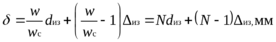 = δ1/2 + δ2/2 + ……. + δn/2 + (δ' +1) + n.dмо, мм