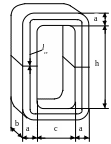 Далее следует выписать из таблиц все необходимые для расчетов данные: типоразмер, основные геометрические размеры магнитопровода (a, b, c, h, lст), его вес Gст, полное сечение магнитопровода Fст = (ab), активное сечение стали сердечника Fст. акт = Fст kст, площадь окна Fо = ch и величину FоFст.