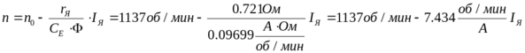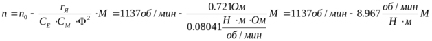 Определить скорость вращения двигателя при номинальном моменте нагрузки, если в цепь якоря включено добавочное сопротивление, равное