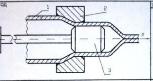После окончания деформирования, (1) движется в обратном направлении, матрицы разжимаются, заготовку извлекают.