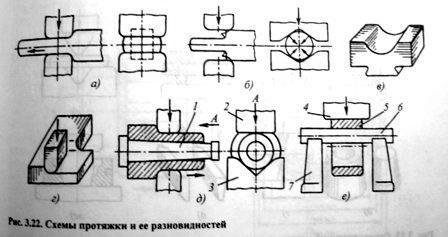 ) протяжка – операция удлинения заготовки засчет уменьшения площади поперечного сечения (заготовка подается вдоль оси протяжки и периодически поворачивается вокруг нее на 90 град. чем медленнее подача, тем интенсивнее удлиннение).