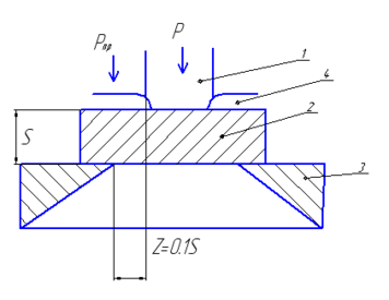 4 –инструмент (прошивень) 7 – выдра 3 –поковка