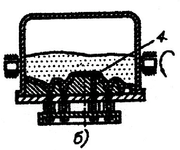 | 1 – металл. модел. плита. Ее нагревают до 200-250°С и устанавлив. на поворотный бункер 2. 3 – формовочная смесь(состоит из термореактив. смолы 4-6%[после нагрева не может верн. в исходн. сост.] + ацетон +керосин) | |