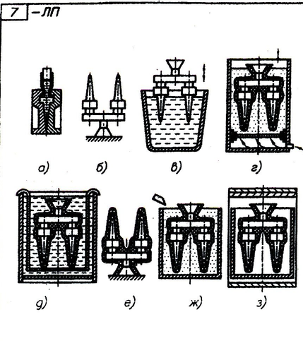 д) выплавление моделей из формы в горячей воде.