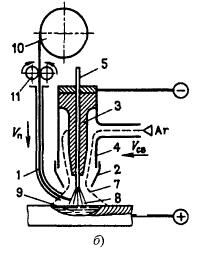 8-сварочная дуга, 9-ванна распл. Мет.