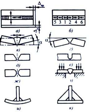 -предварительн. обратным угловым изгибом (перед сваркой) (5.59,г)