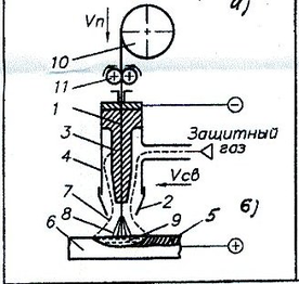 1. Сущность, схемы, технологические возможности и область применения автоматической дуговой сварки с плавящимся электродом в инертных газах.