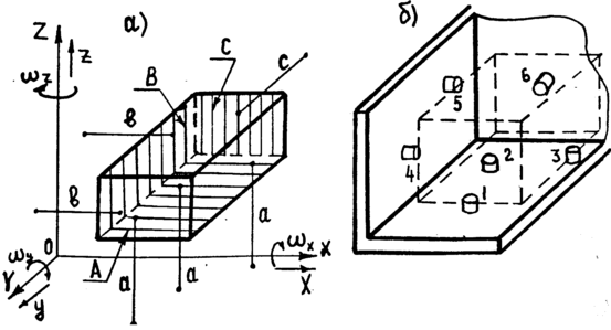 Рис.5. Ориентирование призматического тела в пространстве: а) теоретическая схема;