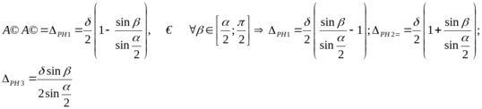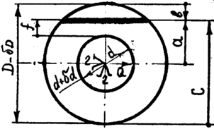 Призма представляет собой деталь с двумя установочными плоскостями, расположенными под углом , равным 60, 90 или 120. Чаще =90. Если на призму (рис.13) устанавливают цилиндрические валики, то, ось валика с наибольшим диаметром D будет находиться в точке 0, а ось валика с наименьшим диаметром D- в точке 01. Величина смещения оси валика (из-за погрешности его диаметра) в направлении плоскости симметрии призмы равна отрезку 001. Легко видеть, что в направлении, перпендикулярном плоскости симметрии призмы, ось валика никогда не смещается.