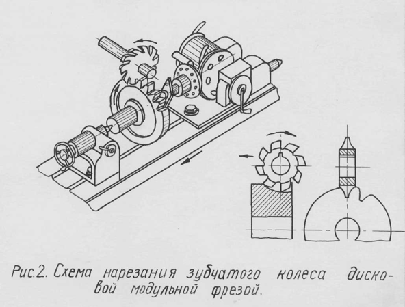 Схема нарезания колеса дисковой фрезой показана на рис.2.