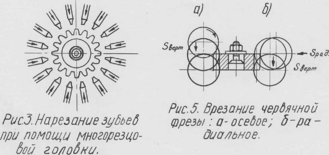 При нарезаний колес подача фрезы производится в радиальном или осевом направлении (рис. 5).