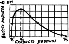 Рис. 14. Зависимость высоты нароста от скорости резания.