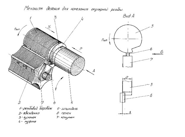 Рис.20 Механизм деления для нарезания окулярной резьбы