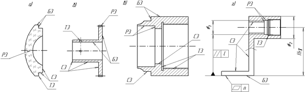 Следует отметить, что одни и те же поверхности (части поверхностей) могут выполнять роль РЭ, БЭ и СЭ. Наиболее благоприятным считается вариант, когда в конструкции удается объединить РЭ и БЭ, минимизировать СЭ.