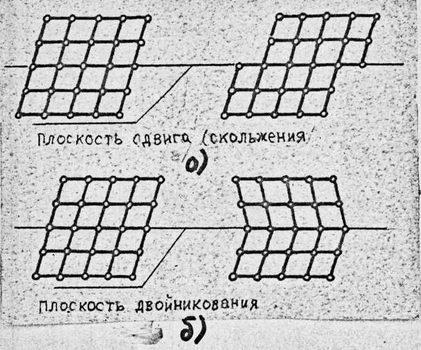 Пластическая деформация монокристалла происходит в основном двумя путями: скольжением и двойникованием.