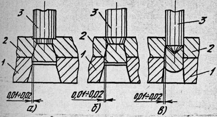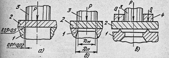 и коническим торцем пуансона (рисунок 11,в). Применяют этот способ для тех же металлов, но диаметр отверстий