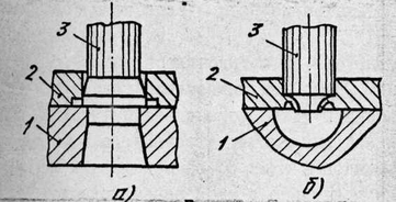 и торцем пуансона в виде усеченного конуса (рисунок 11, б). Применяют эти штампы для более толстых металлов тех же марок, но диаметр отверстия